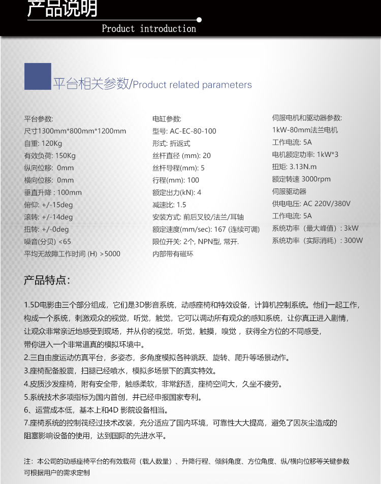 答: 我公司主要從事仿真平臺、六自由度平臺和運動平臺控制卡的研發、生產與銷售,同時承接大型4D/5D/7D影院等工程。專注技術領先,提升用戶體驗是我們的追求!