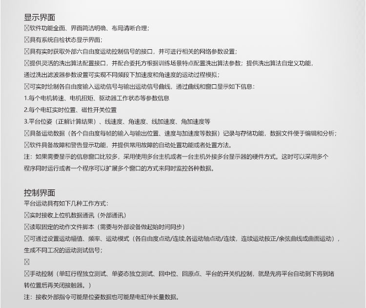 六自由度運動平臺涉及到機械、電氣、控制、計算機、傳感器,空間運動數學模型、實時信號傳輸處理等一系列高科技領域,因此六自由度運動平臺是控制領域水平的標志性象征。主要包括平臺的空間運動機構、空間運動模型、電動系統、控制系統。