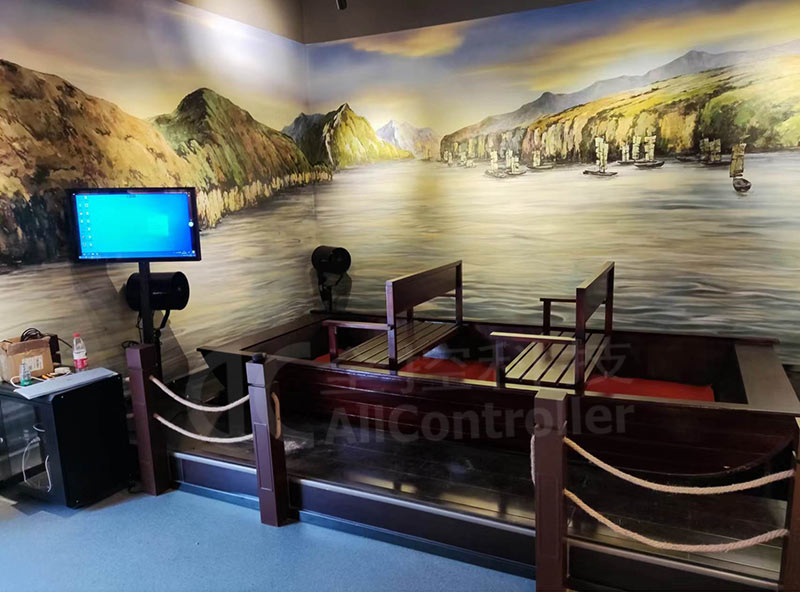 該六自由度平臺專門用來科普館VR模擬科普船,體驗大宋的海運繁榮的盛世。體驗者坐在船舶模擬器上,通過佩戴VR眼鏡觀看大宋海運的繁盛,船舶隨著波浪顛簸,平臺本身也會隨之運動,有如親身泛舟在大宋港口中,體驗前年前的盛世。