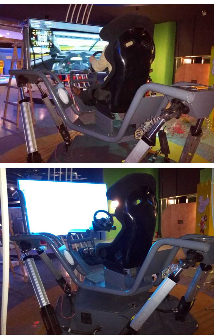 高清顯示屏,專業(yè)的賽車配件及音響系統(tǒng), 準(zhǔn)確 還原車輛撞擊、墜落、加速等瞬間重力速度、路面起伏感。駕駛者將獲得前所未有的獨(dú)特體驗。