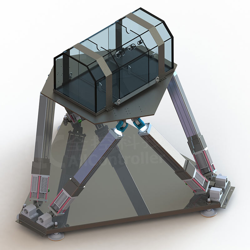 六自由度運(yùn)動(dòng)平臺(tái)控制系統(tǒng)通過無(wú)線方式(WIFI或者5G傳輸)接收真實(shí)電鏟的運(yùn)動(dòng)數(shù)據(jù)及運(yùn)行數(shù)據(jù),然后將接收到的數(shù)據(jù)進(jìn)行集中分析處理,系統(tǒng)根據(jù)處理結(jié)果來控制運(yùn)動(dòng)平臺(tái)做出匹配的動(dòng)作,可真實(shí)的模擬電鏟各個(gè)工作模式下的運(yùn)動(dòng)反饋,例如路面顛簸感、鏟斗碰撞物體的碰撞感、上下坡的傾斜感等。平臺(tái)執(zhí)行器與控制器分開布置方便檢修維護(hù)。