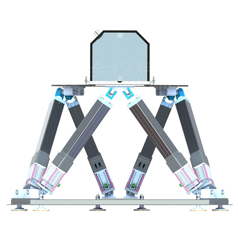 六自由度運(yùn)動(dòng)平臺(tái)、運(yùn)動(dòng)控制器、交換機(jī)、電源電纜、通訊電纜等安裝附件。本地接收到遠(yuǎn)程IMU采集到的座椅姿態(tài)和加速度信息后,解算成座椅6個(gè)方向的運(yùn)動(dòng)信號(hào)來控制運(yùn)動(dòng)平臺(tái),同時(shí)將相關(guān)信息輸出到顯示終端。