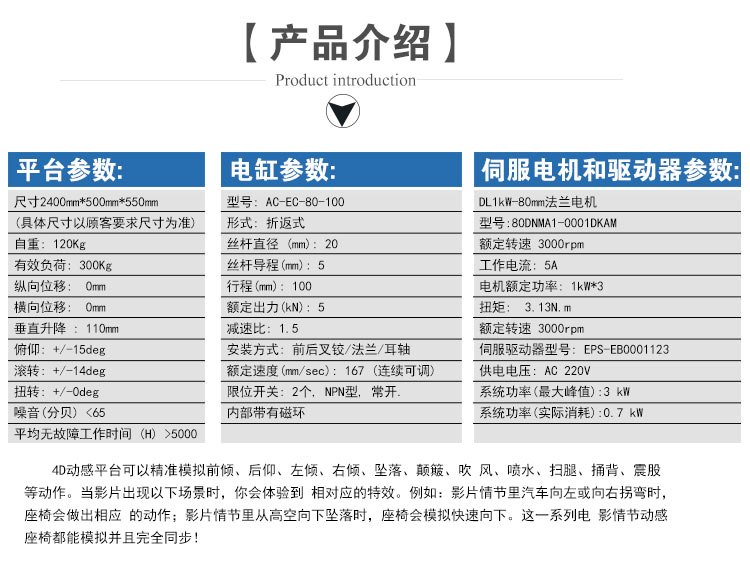 4D動(dòng)感座椅是建立4D動(dòng)感影院必不可少的構(gòu)成元素之一,4D動(dòng)感座椅可以根據(jù)4D動(dòng)感影院中特效座椅的布置故事情節(jié)的不同而由計(jì)算機(jī)控制做出不同的特技效果來(lái),例如,墜落,震蕩,噴風(fēng),噴雨等等,再配上精心設(shè)計(jì)出來(lái)的煙霧、雨、光電、氣泡、氣味等,從而營(yíng)造一種與影片內(nèi)容相一致的全感知環(huán)境。