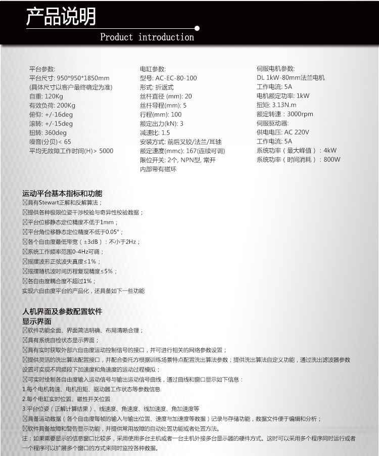公司生產的 5D 動感座椅平臺產品系列齊全,各種類型的氣壓平臺、液壓平臺和電動平臺均為自主研發和生產,以滿足廣大客戶的需求。本公司的研發隊伍具有多年的5D 動感座椅平臺硬件、電路和軟件的研發經驗,技術實力雄厚,從設計的源頭上保證了產品的性能和質量。另外在零部件選購、生產、測試等環節嚴格控制,以保證最終產品的性能和質量。
