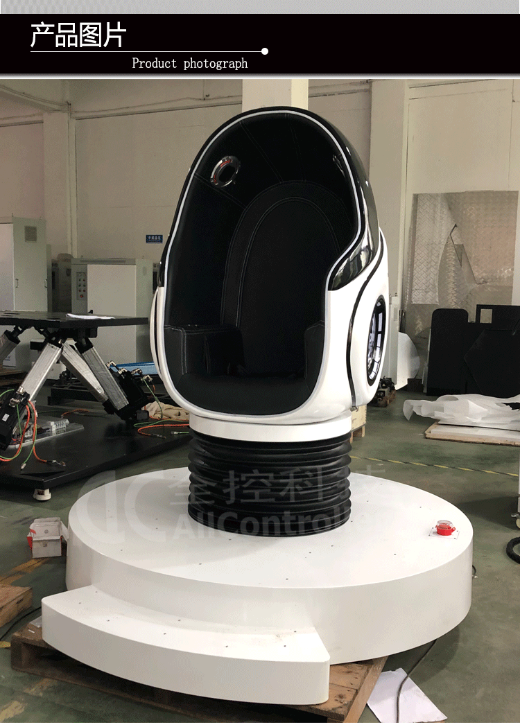 此產品是我司自主研發,生產,自帶旋轉功能的動感座椅。VR蛋椅是將多人互動技術巧妙結合于一體的沉浸式體驗項目,可以將觀眾帶到各種環境中,享受身臨其境般的震撼體驗。