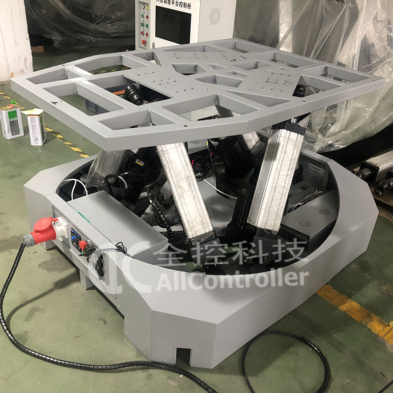 該六自由度飛行模擬器用于飛行模擬訓練和研究,進行動作姿態捕捉,真實模擬飛行駕駛體驗,廣泛用于飛行模擬訓練以及飛行事故應急模擬,節省大量訓練經費和教學時間。除此之外,賽車模擬器、船舶模擬器、地震體驗館也廣泛使用此類平臺作為體驗模擬使用。