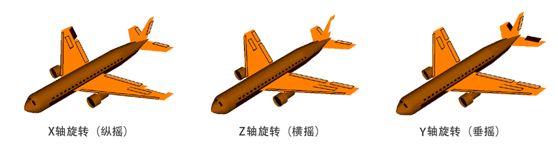 剛體也可以在3個(gè)自由度中旋轉(zhuǎn):縱搖(Pitch)、橫搖(Roll)和垂搖(Yaw)。