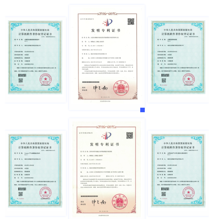 截止目前為止,南京全控擁有專利63件、軟件著作權41件、軟件產品8件、商標5件,并獲得國家級高新技術企業、江蘇省科技型中小企業、江蘇省民營科技企業、軟件企業、江蘇省科普產品研發基地、南京市2017年度專精特新中小企業、江寧區守合同重信用企業、創新發展先進單位、江寧區知識產權示范企業等稱號,其中公司自主研發生產的六自由度仿真平臺被認定為江蘇省重點推廣應用的新技術新產品、江蘇省高新技術產品、南京市新興產業重點推廣應用產品。