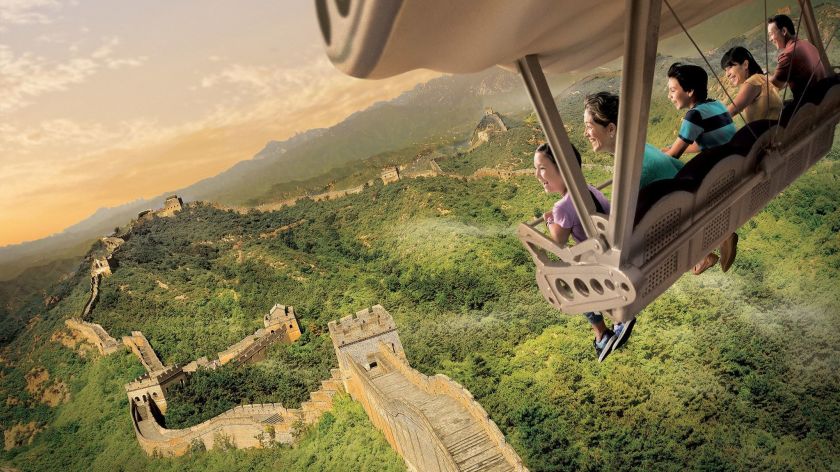 為了獲得視覺效果,飛行影院使用60英尺寬的半圓形(又稱半球形)屏幕和超高清攝像頭。用于音頻,環繞聲和原始音樂。對于運動,座椅產生強烈的運動感覺。最后一點:微風吹拂著游客的頭發,飄散的霧氣和飄散在空氣中的自然氣味。這樣就產生了多維的飛行幻覺。