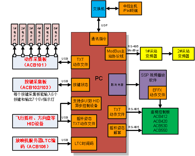播放器內部同步 平臺單獨操作。需要播放影片和動作 在影院時和中控配合使用。需要播放影片和動作