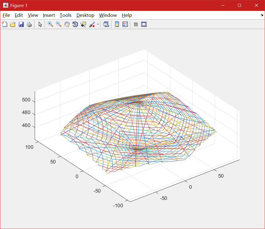 利用MATLAB計(jì)算Stewart平臺工作空間,得到工作范圍,如圖2.22.3所示。
