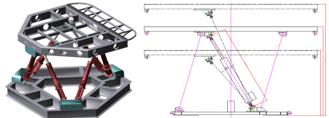 上平臺是有效載荷的安裝基面,其提供六自由度的搖擺運動。下平臺是TecPlat六自由度運動平臺的安裝基面,需要有足夠的強度和承受足夠大的沖擊力。